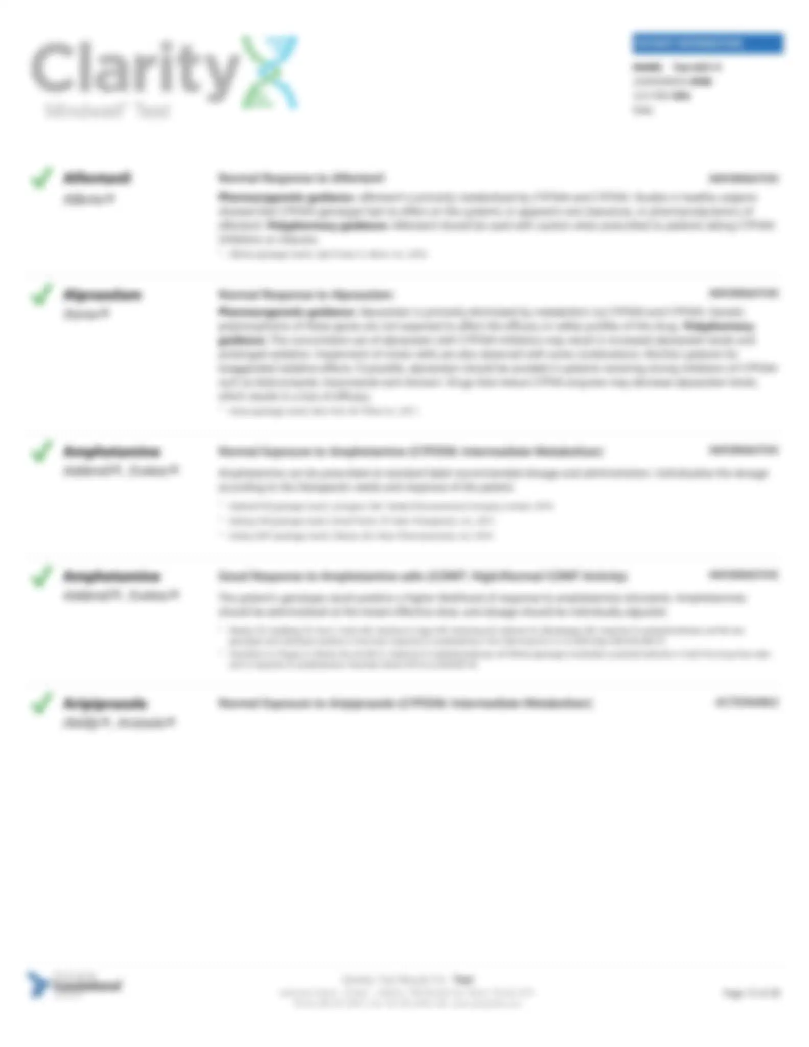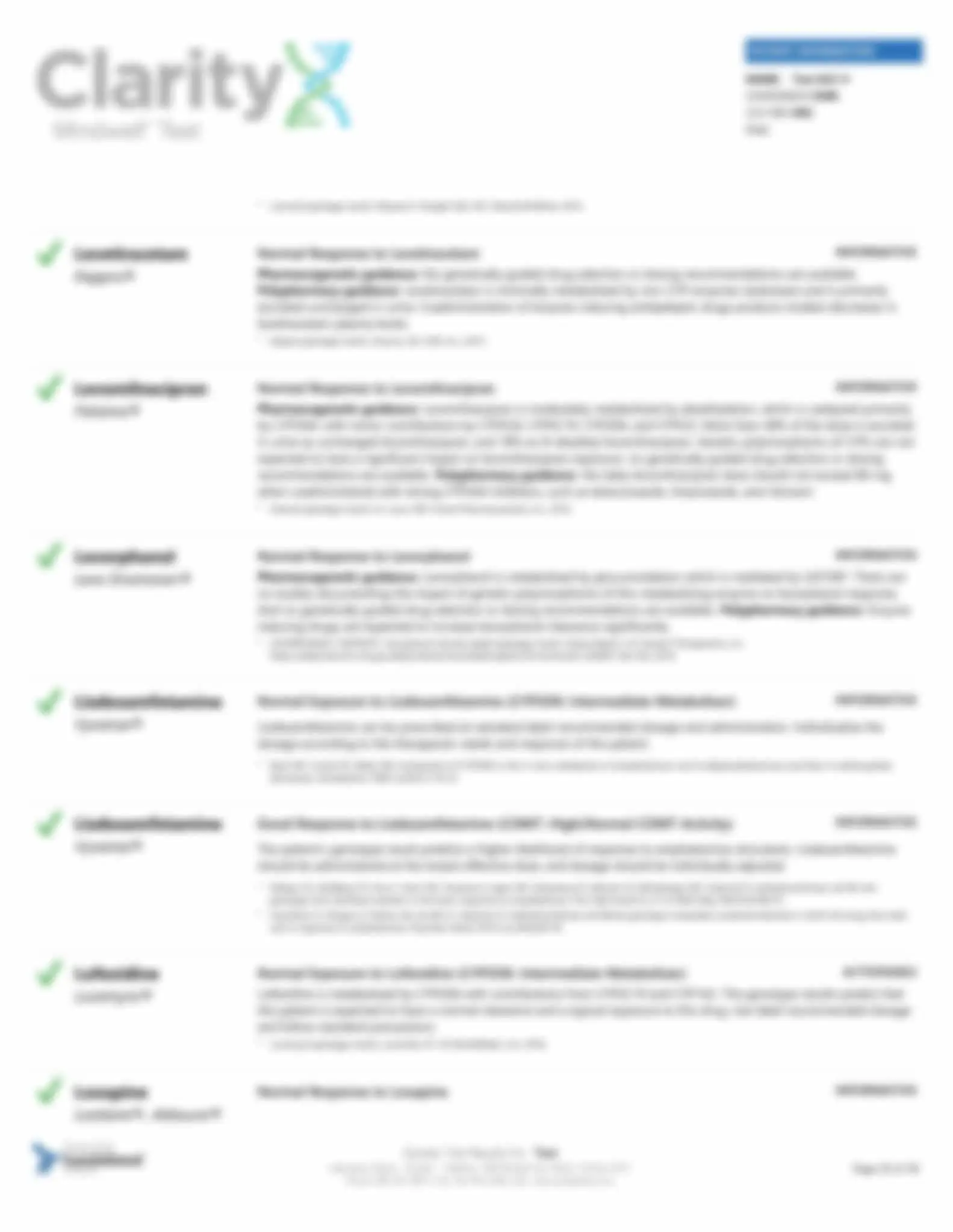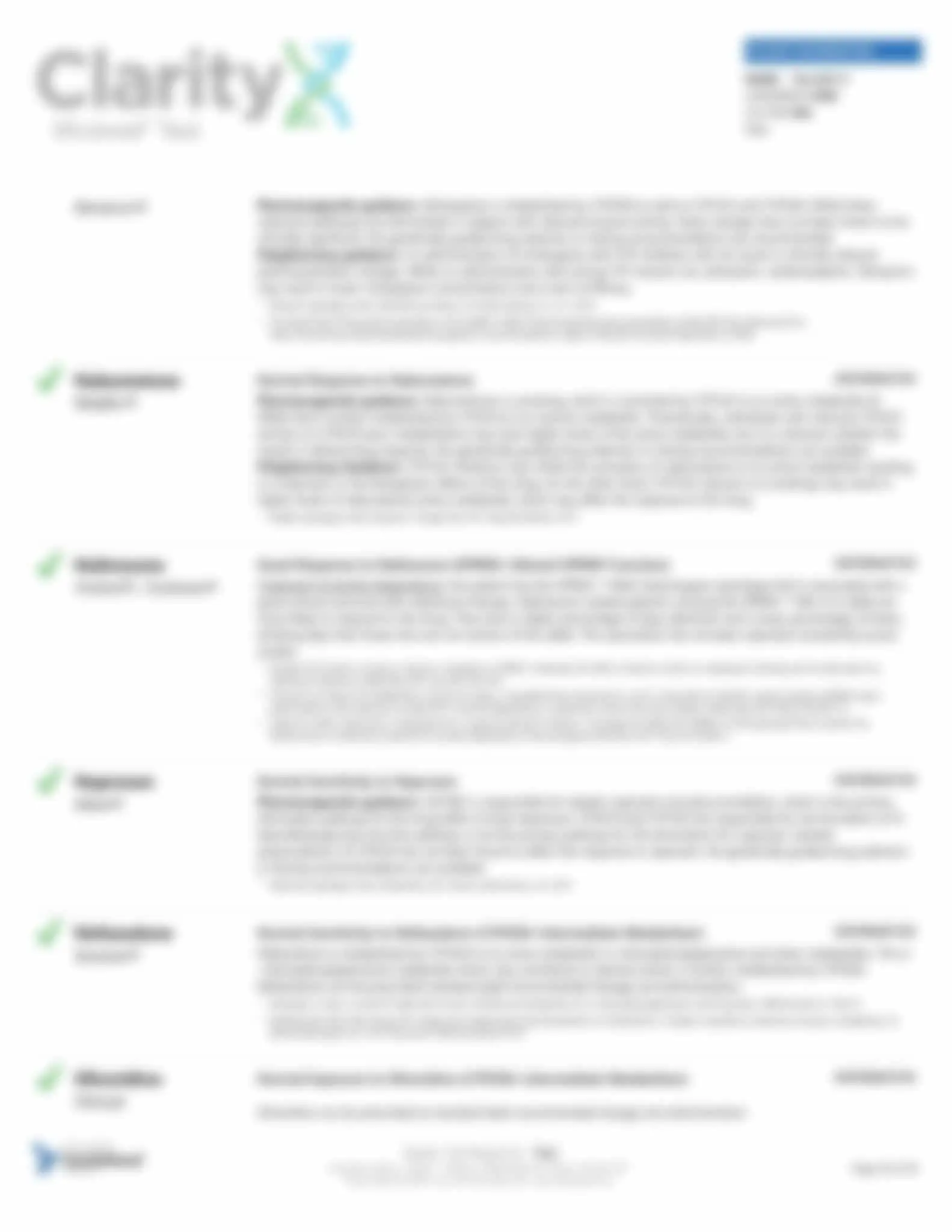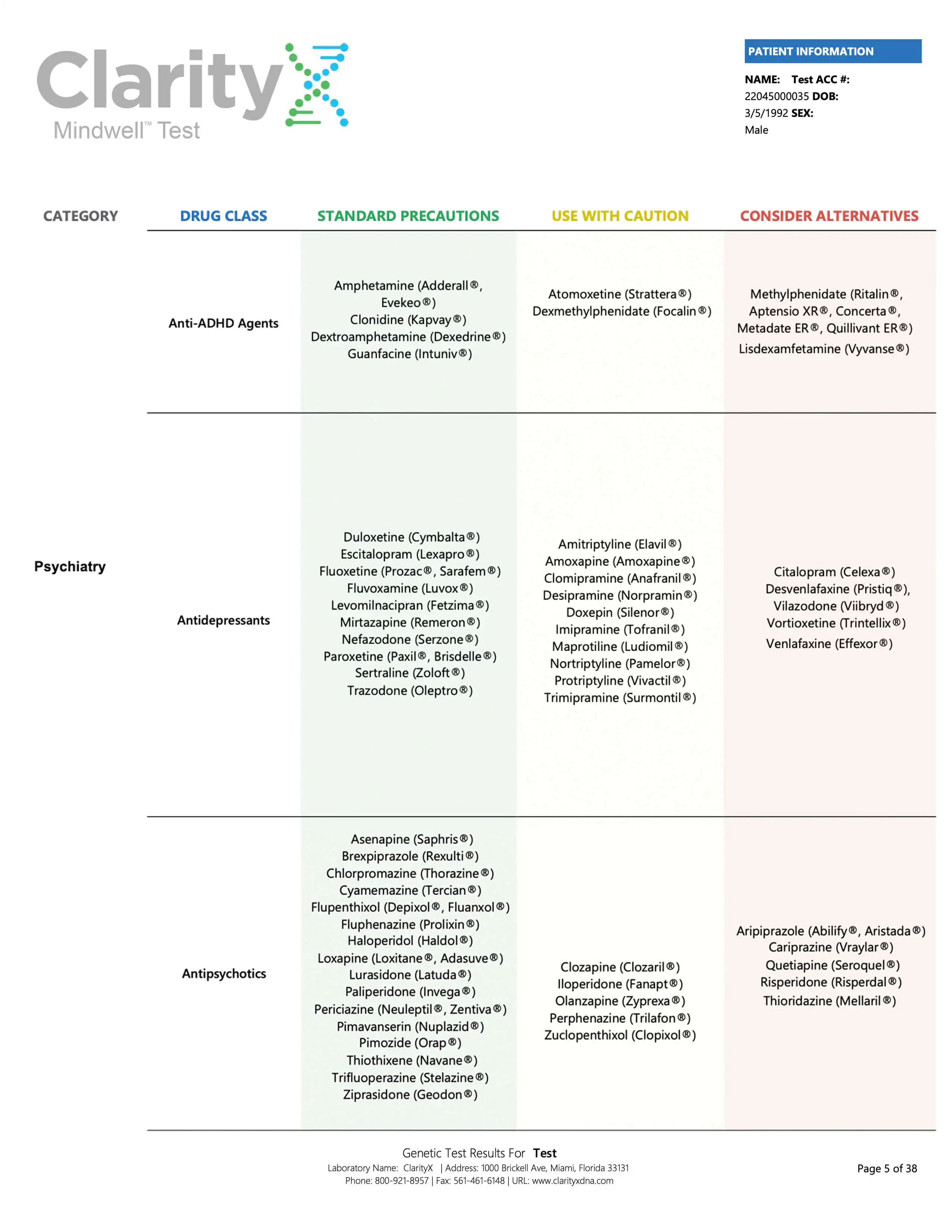View More FAQ’sThe ClarityX® test covers 275+ of the most commonly prescribed FDA approved medications. Including the following therapeutic areas: See complete medication directory