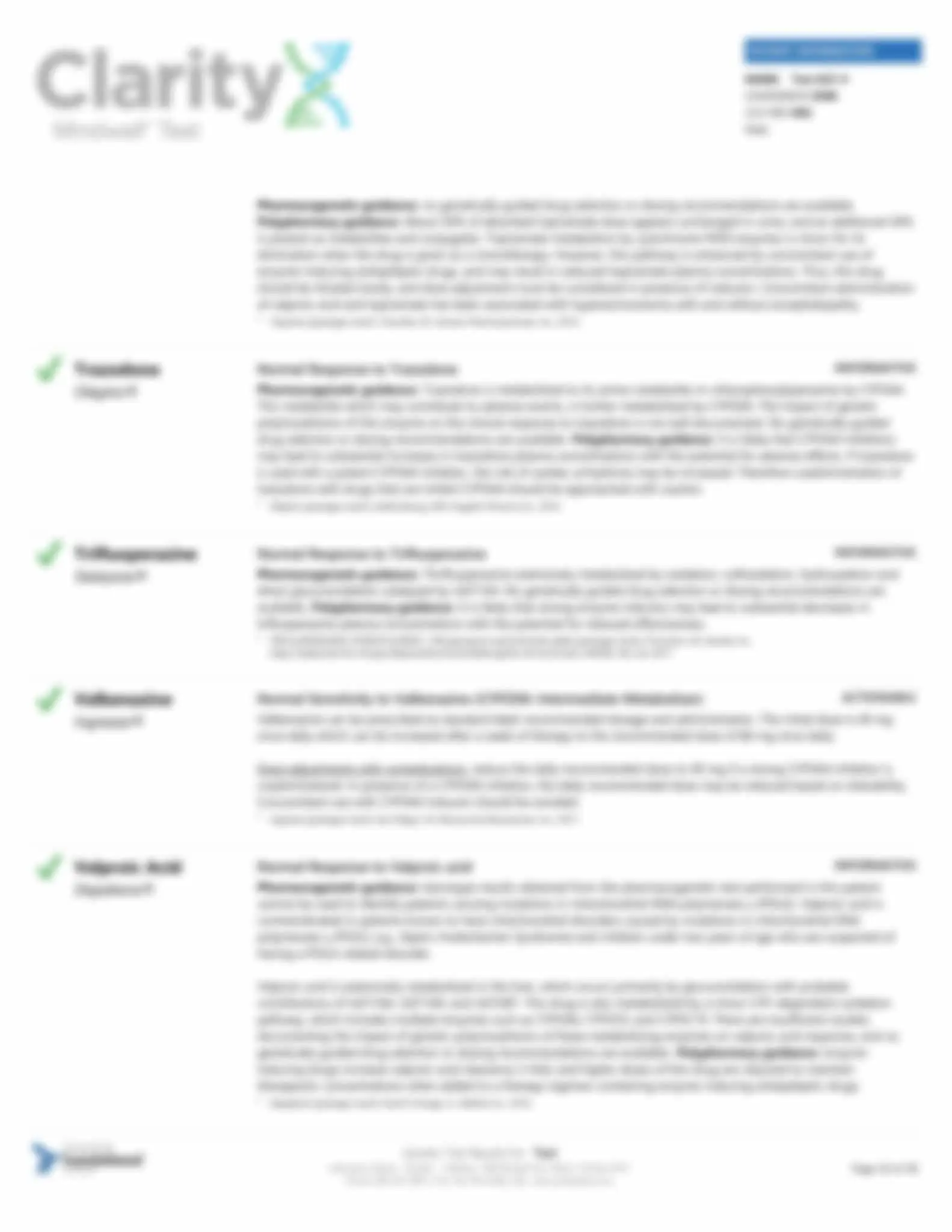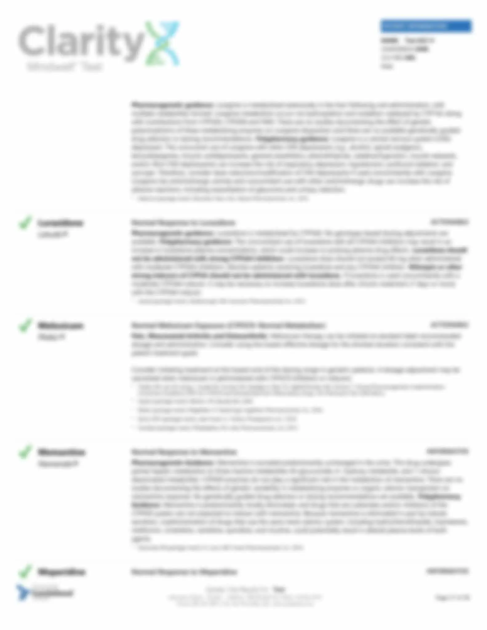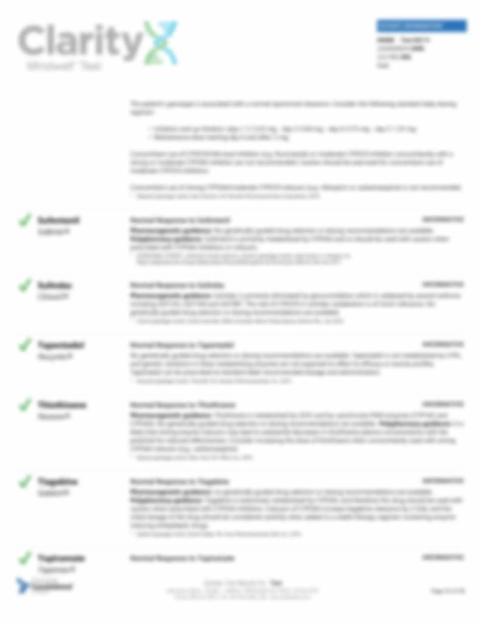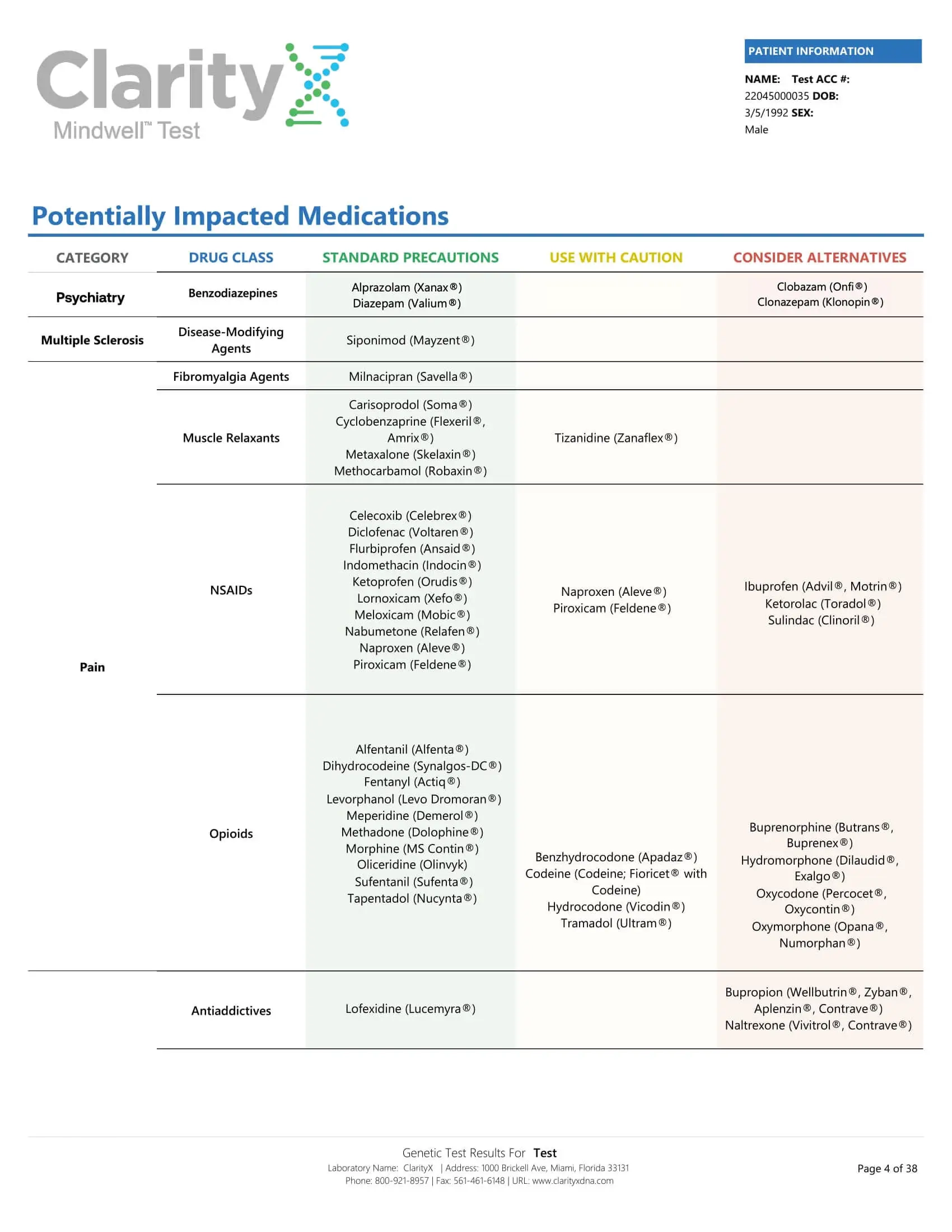 View More FAQ’sThe ClarityX® test covers 275+ of the most commonly prescribed FDA approved medications. Including the following therapeutic areas: See complete medication directory