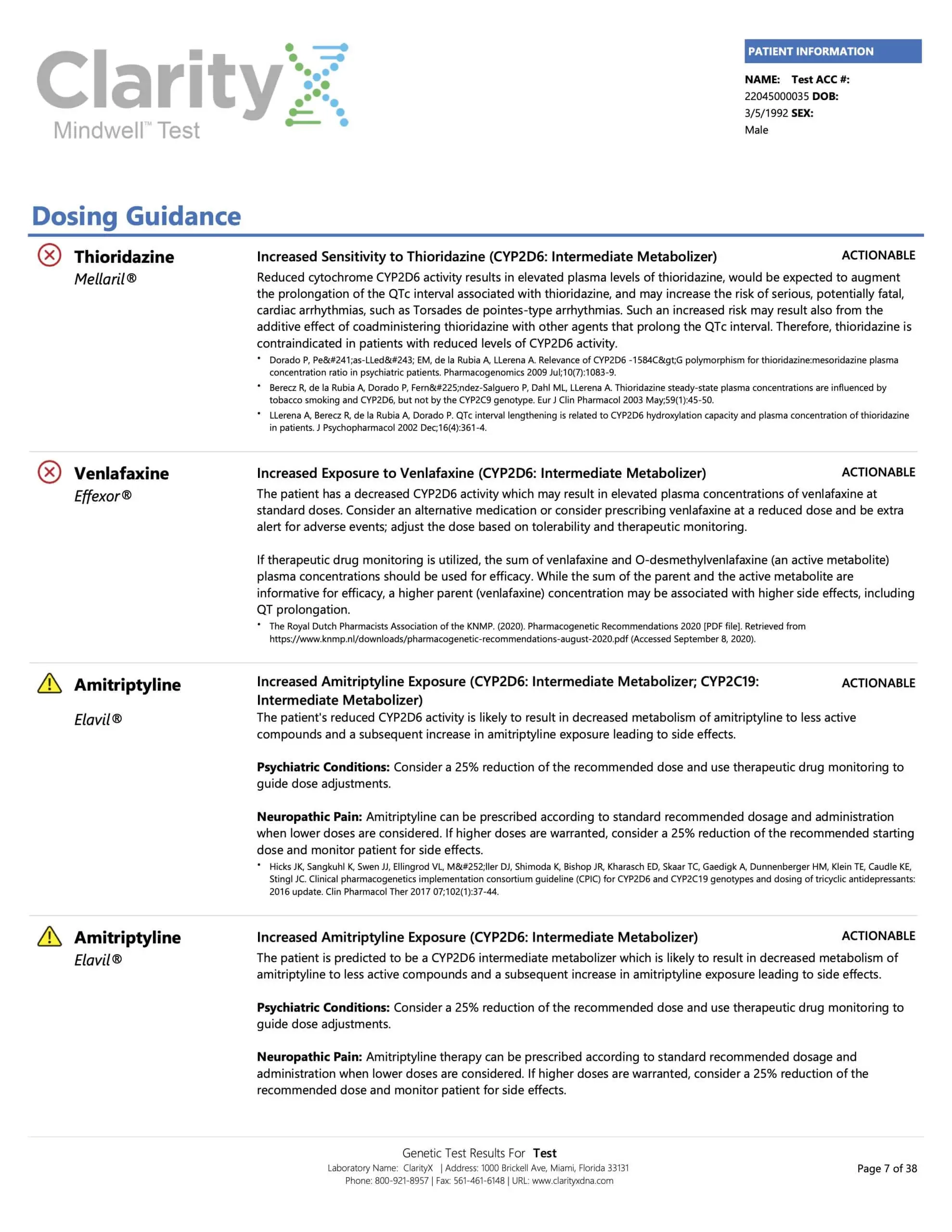 The ClarityX Mindwell® test is designed to give you clear actionable insights on which mental health medications may work best for you based on your genetic profile.