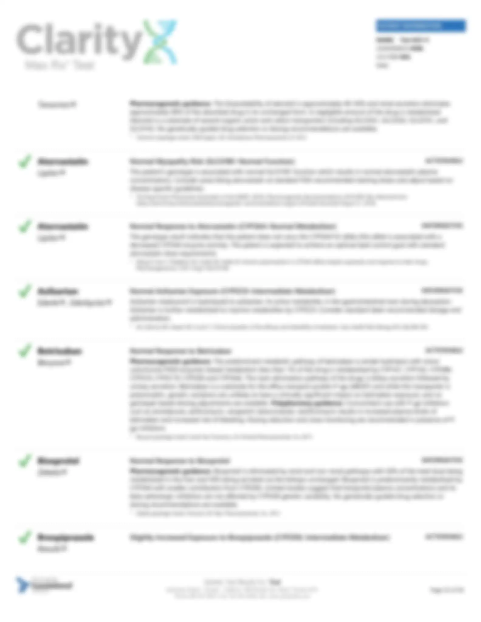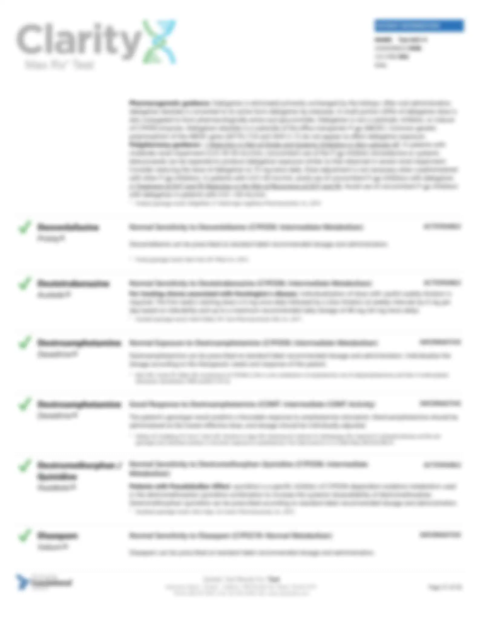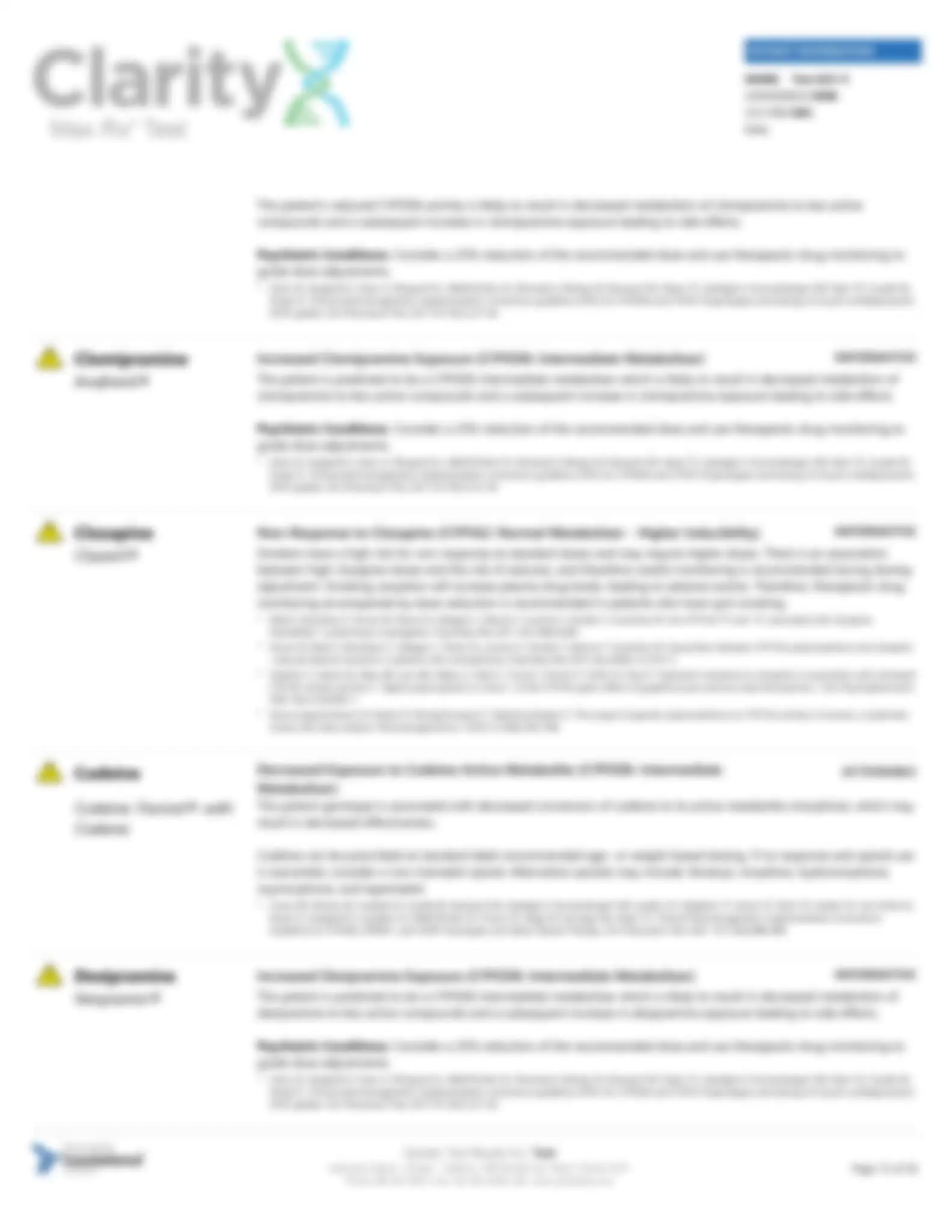 ClarityX Max Rx® goes beyond mental health by giving you a complete picture as to which medications may work best for you. This includes medications that may require a dosage adjustment as well as drugs that may put you at risk for unwanted side effects based on your genetic profile.